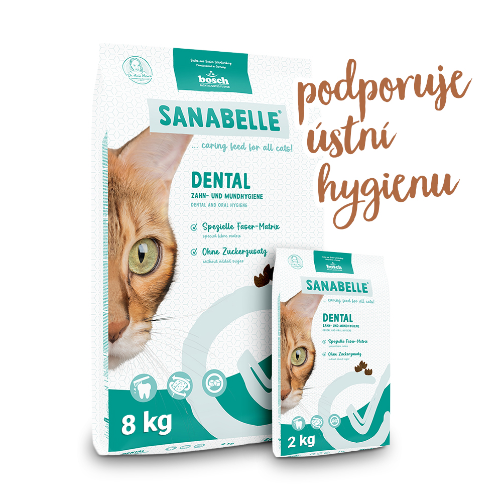 Sanabelle Dental bolo špeciálne vyvinuté pre dospelé mačky, ktorých ústne a dentálne zdravie potrebuje každodennú podporu. Funkčná receptúra kombinuje cielenú zubnú starostlivosť s vyváženou stravou - pre lepšiu kvalitu života a dlhodobú pohodu vašej mačky v každodennom živote. ---