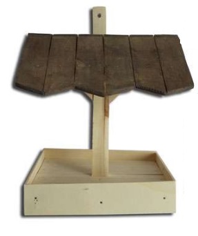 Klasické, ručne vyrábané drevené krmítko pre vonkajšie vtáctvo.* je pripravený na naskrutkovanie na zvislú plochu.