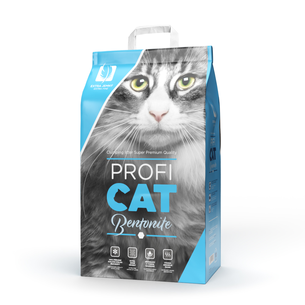 Biele podstielka PROFICAT Bentonit white extra fine, vyrobené z prírodného bentonitu zaručuje zdravotnú nezávadnosť pre Vašu mačičku, ostatných členov domácnosti a zároveň je ohľaduplné k životnému prostrediu