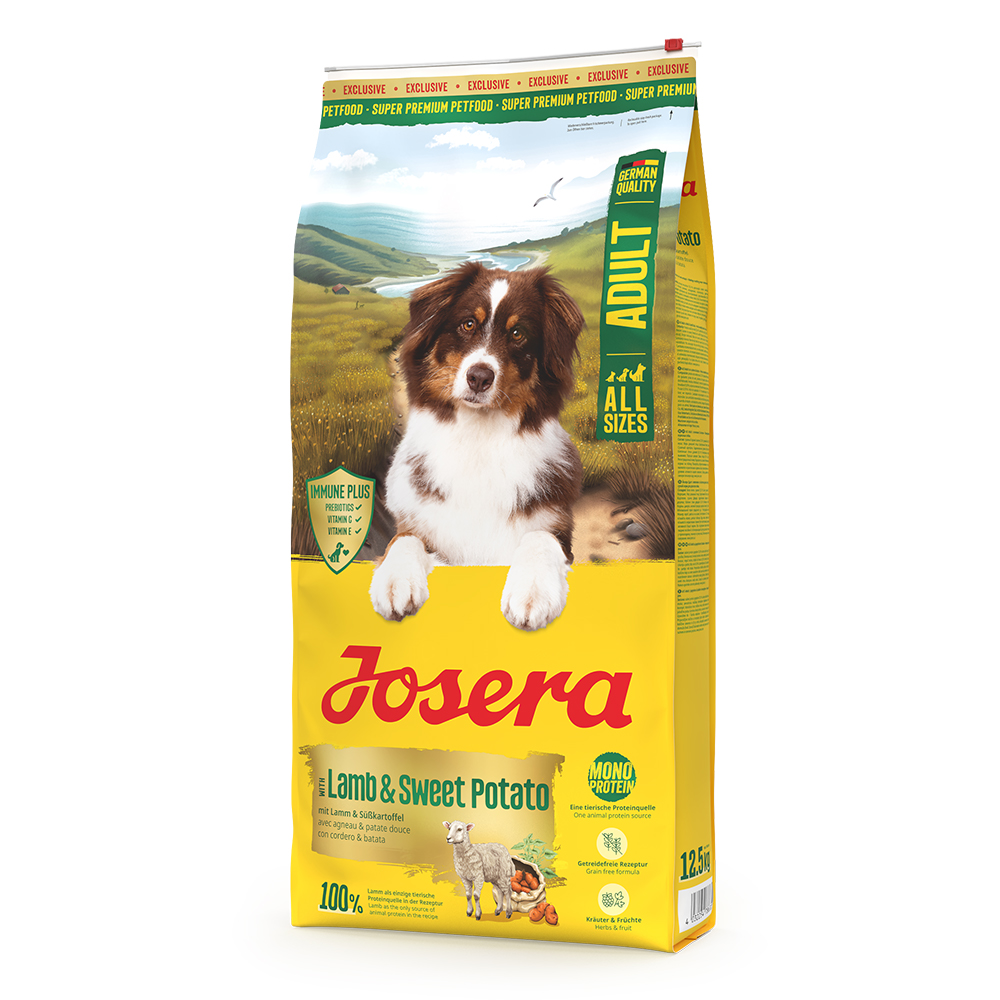 Josera Lamb & Sweet Potato ponúka rýdzi pôžitok z jahňacieho mäsa s vybranými bylinkami a ovocím as receptúrou bez obilnín. Vďaka jahňaciemu mäsu ako jedinému zdroju živočíšnych bielkovín a batátom ako hodnotnému alternatívnemu zdroju energie poskytuje toto krmivo pre dospelých psov dobre znášanú stravu, ktorá je vhodná pre všetky plemená a veľkosti. Krmivo dopĺňajú dôležité vitamíny a minerálne látky. Cenné mastné kyseliny navyše podporujú peknú kožu a lesklú srsť, zatiaľ čo Josera IMMUNE PLUS podporuje imunitný systém vášho psa. Naše krmivo Jahňacie s batátom sa teraz volá Lamb & Sweet Potato. S novým dizajnom je osvedčená receptúra doplnená o IMMUNE PLUS.