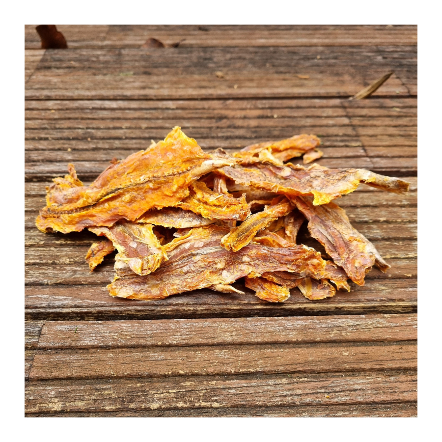 Sušená ryba, Lizardfish je 100% prírodná maškrta bez farbív a konzervantov. Má vysoký obsah bielkovín, ktoré podporujú pohybový aparát psíkov, a tak pozitívne pôsobia na ich svaly. Maškrta je ľahko stráviteľný, nezaťažuje preto tráviaci systém psíka. Vďaka nízkemu obsahu tukov môže byť tiež používaný ako doplnok pri regulácii hmotnosti. Je vhodný predovšetkým pre psíkov s potravinovými alergiami, intoleranciou alebo pre tých s citlivým trávením. Pošmáknú si na ňom ale aj tí, ktorých žiadny z týchto problémov netrápi, a potrebujú sa skôr trochu dostať do formy. Zloženie: 100% sušená ryba Lizardfish (Jašterica hlbinná) Hmotnosť: 170g
