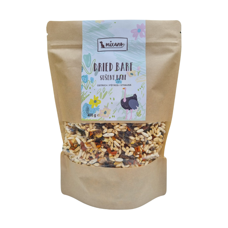 Parametre produktu Mixáno Sušený BARF Pštros 400 g