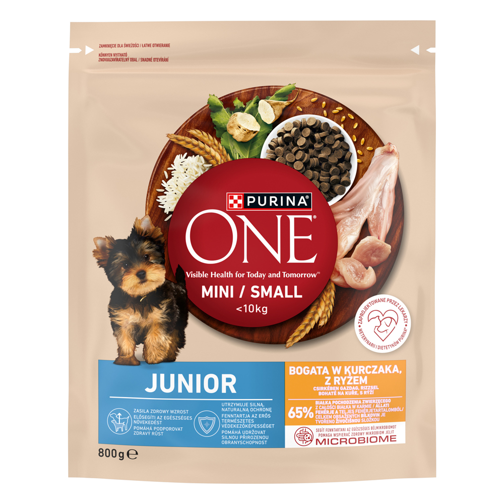 PURINA ONE® MINI/SMALL < 10 kg Junior je chutná receptúra bohatá na kura s vysokým podielom bielkovín, ktoré pomáhajú podporovať zdravý rast vášho šteňaťa od 1 do 12 mesiacov. Obsahuje vysoko kvalitné su