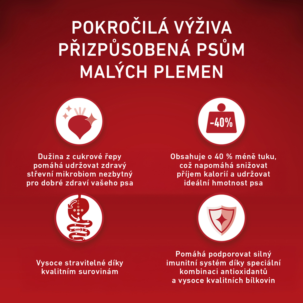 PURINA ONE® MINI/SMALL < 10kg Weight Control/Sterilised je určená pre psy malých plemien, ktorí sú menej aktívni, s nadváhou alebo kastrovaní/sterilizovaní, ai napriek tomu si chcú vychutnať svoje krmivo.