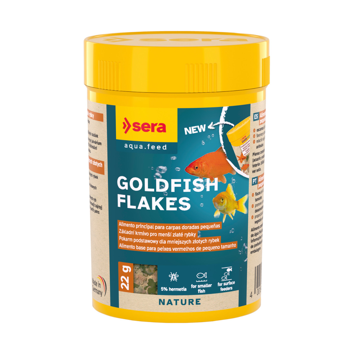 Goldfish Flakes je základné krmivo pre menšie zlaté ryby a ich šľachtené formy ako napr. shubunkin, závojnatka alebo karas zlatý a ostatné studenovodné ryby, ktoré nepotrebuje farbivá a konzervačné látky. Vďaka hmyzej múčke obsahuje zdroj vysoko kvalitných bielkovín, ktoré navyše šetria zdroje. Vyvážený pomer rastlinných a živočíšnych zložiek zaisťuje ľahko stráviteľné krmivo podporujúce zdravie a nádherné vyfarbenie. Vločky si držia svoj tvar, sú vhodné pre studenovodné ryby vyhľadávajúce potravu na hladine, a nekalia vodu. Zloženie: rybia múčka, pšeničná múka, pivné kvasnice, múčka z hmyzu (Hermetia illucens) (5%), kazeín (syrovina), surový lecitín, múčka rias, spirulina (1,5%), Mannan-oligosacharid (0,4%), olej z tresčej pečene, lucerna, žihľavy, petržlen, paprika, mäsová múčka zo slávok zelenoústých, špenát, karotén, riasy Haematococcus, cesnak, semená semená, semená anízu. Analytické zložky: bielkoviny 47,5%, tuky 9,0%, vláknina 2,0%, vlhkosť 5,0%, popol 10,0%. Doplnkové látky: Vitamíny a provitamíny: 3a672a/vit. A 37.000 IU/kg, 3a671/vit. D3 1800 IU/kg, 3a700/vit. E 120 mg/kg, 3a820/vit. B1 35 mg/kg, 3a825i/vit. B2 90 mg/kg, 3a312/stab. vit. C 550 mg/kg.