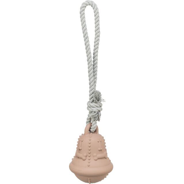 Vánoční zvonek na pamlsky, na laně, ø 12/36 cm, tvrdá guma/bavlna, starorůžová